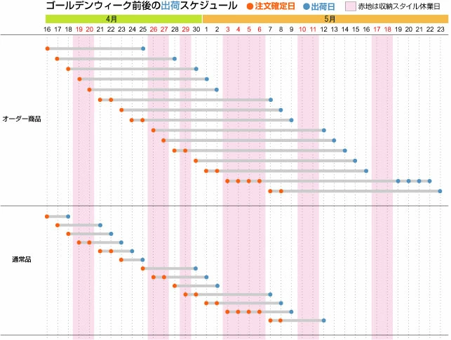 注文確定後の出荷スケジュールは、以下の表をご確認ください。